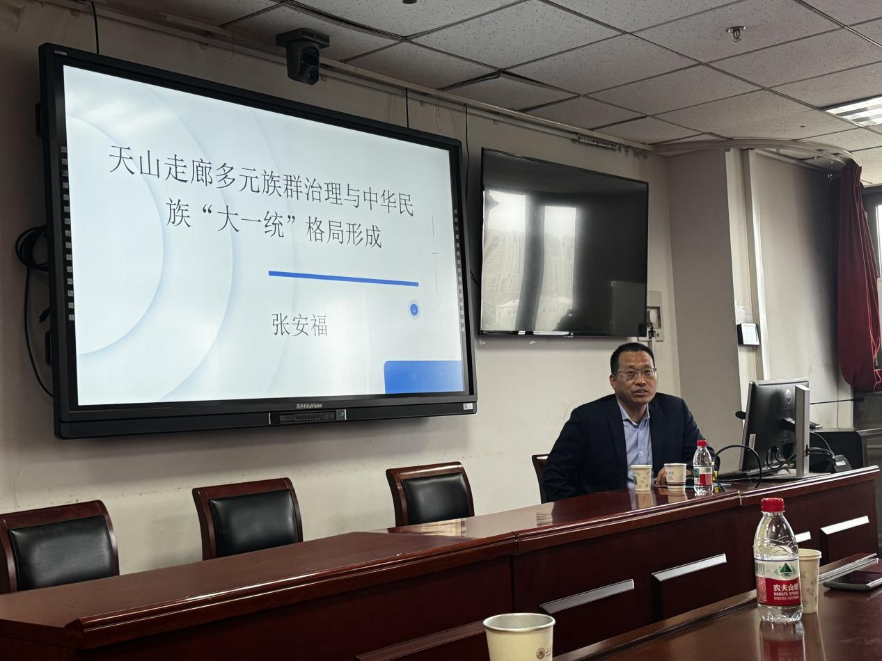 2026年4月8日,张安福教授做客太阳成集团tyc122ccvip,作题为“天山走廊多元族群治理与中华民族‘大一统’格局形成”的学术讲座。讲座由太阳成集团tyc122ccvip院长代国玺教授主持。