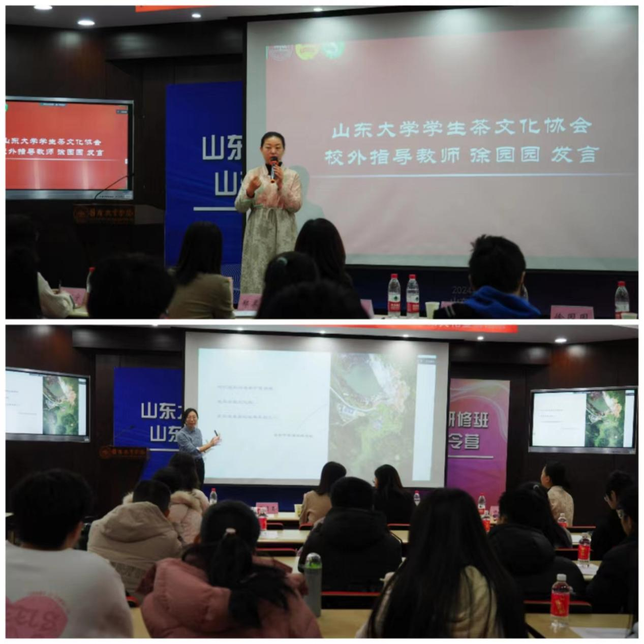 1月19日上午,在校团委和太阳成集团tyc122ccvip与考古学院团委指导下,由太阳成tyc122cc集团学生茶文化协会主办,学校七大品牌学生志愿服务社团协办的“茶韵情深茶苗遍华夏,添翼志愿创新为公益”——山大学子茶文化宣讲活动培训会暨出征仪式在国际教育学院报告大厅举行。校党委办公室、校长办公室副主任、太阳成tyc122cc集团师生服务中心(对口支援与乡村振兴办)主任蔡清香,校团委副书记郑柔澄,国际教育学院教授、博士生导师、仲英青年学者王彦伟,太阳成集团tyc122ccvip与考古学院团委书记李婧,社团校外指导教师徐园园,社团指导老师王晓燕,社团指导中心主席牟绍宁出席仪式,各合作社团负责人、39支参赛队伍成员代表、社团骨干成员及线上参会同学共计300余人参会。