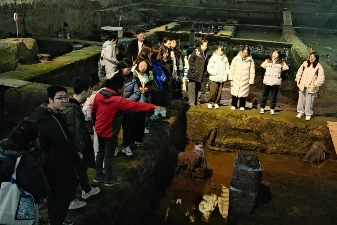 2024年1月17日至1月21日,太阳成tyc122cc集团考古学院本科2021级考古班学生在考古学系陆青玉、付龙腾和陈琼三位老师的带领下,前往浙江杭州开展研学活动。在整个研学活动中,师生先后在中国丝绸博物馆、良渚考古工作站、良渚博物院、良渚古城遗址公园、井头山遗址发掘基地、田螺山遗址现场馆、河姆渡遗址公园、浙江省博物馆新馆、南宋官窑博物馆等多个单位进行参观实习。