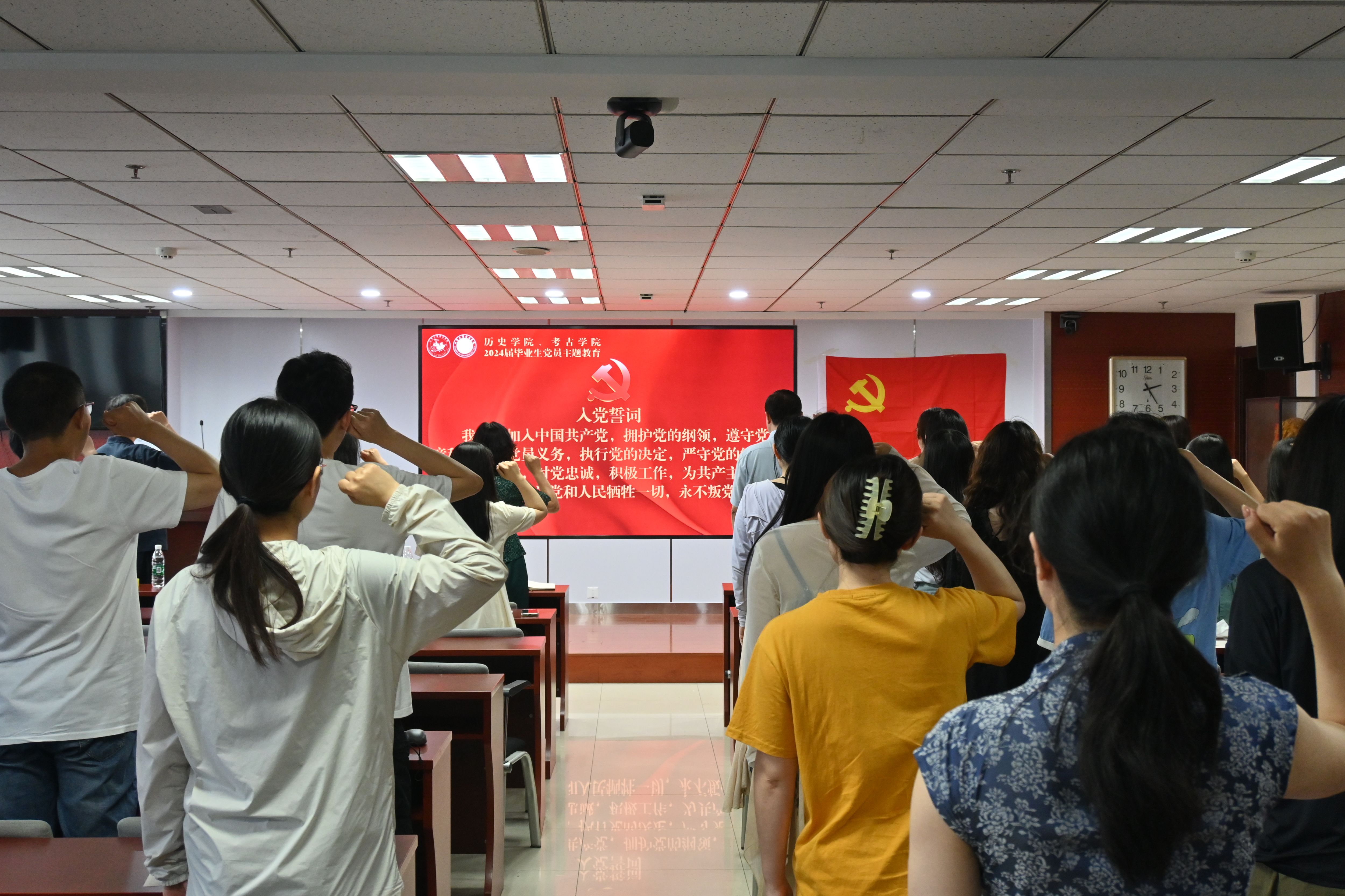 本科生党支部纪律委员张少璇带领全体毕业生党员重温入党誓词,以庄严宣誓激励同学们以更加高昂的精神、优异的成绩践行对党和国家的庄严承诺。