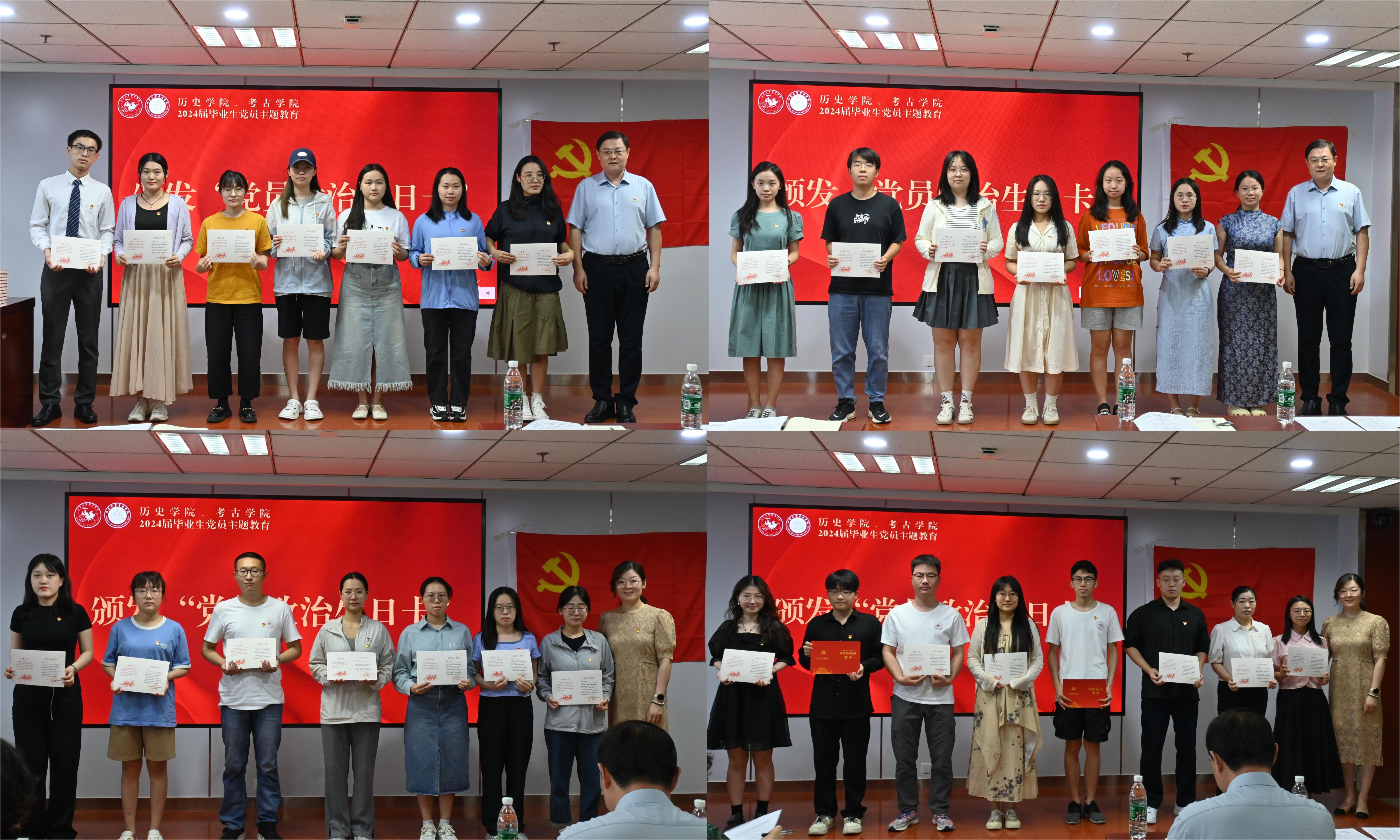 李功华、李一楠为毕业生党员颁发“党员政治生日卡”,希望全体毕业生党员牢记党员身份,践行时代责任和历史使命,以实际行动在全面建设社会主义现代化国家的新征程上贡献新的青春力量。