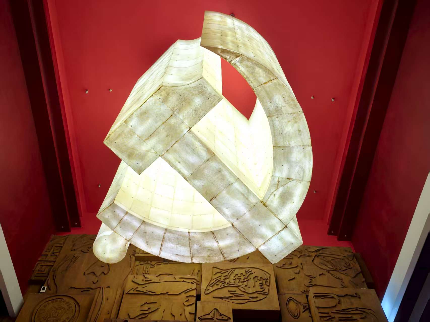 随后,实践队来到1933纪念广场。广场中央,纪念碑巍然矗立,碑身正面“陕甘边革命根据地的英雄们永垂不朽”鎏金大字在朝阳下熠熠生辉。碑座浮雕以凝练画面集中呈现刘志丹、谢子长、习仲勋等共产党人发动群众、组建红军,战士们在崇山峻岭间浴血奋战,根据地群众以纺车、锄头支援前线的群像,定格了军民一心、艰苦斗争的历史瞬间。队员们肃立碑前默哀,并齐声高唱《歌唱祖国》,激昂歌声回荡广场,寄托对革命先辈的无限敬仰。