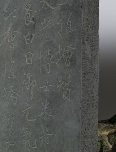 在此之前,团队成员曾到访两地了解基本情况,为碑刻拍照、编号、记录数据,识读碑刻文字,查阅相关史料,了解碑刻故事,设计并撰写数字档案,制作二维码供游客线上线下扫描了解碑刻信息。但是,完成以上实践工作后,虽然碑刻记载的历史信息可以较为清晰详细地呈现,但其实体外形不能形象的展现出来。对此,该团队决定构建三维碑刻模型。