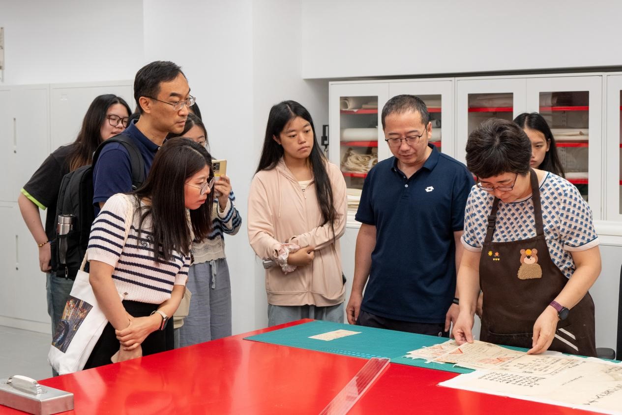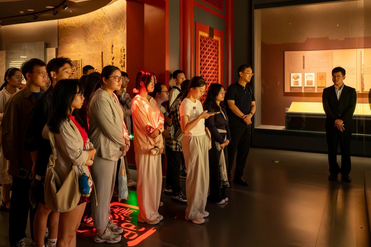 8月27日下午,师生们前往中国第一历史档案馆参观学习。在一史馆老师的陪同下,师生们依次参观了“兰台翰墨 家国春秋——明清历史档案基本陈列展”和“盛载千秋——明清档案装具陈列”等明清历史档案展,深入了解明清两朝历史演进、极具特色的明清档案装具以及明清档案事业发展历程。随后的座谈中,双方就一史馆的明清档案馆藏情况、档案编研发展趋势、查档服务策略、技术赋能历史档案的研究和开发利用等主题进行了深入交流,共同探讨历史档案资源在新时代的价值焕活路径。