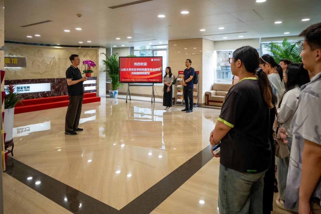 8月28日下午,师生们来到国家电网档案馆参观学习,国家电网档案馆周峰馆长对师生们的到来表示欢迎,并为大家亲切讲解国网档案馆发展概况。在档案馆开发利用处张喜波处长的陪同下,师生们参观了国家电网公司档案馆展厅,深入了解电力工业的历史变迁、国家电网公司历史沿革和发展成就,观览电网科技档案和实物档案等珍品馆藏,切身感受我国电网行业从区域化发展至全国互联的历史进程。在交流座谈环节,双方对国家电网数字档案馆系统的功能建设、集团企业档案集中管理模式和企业档案开发利用场景等进行了深入交流与讨论。