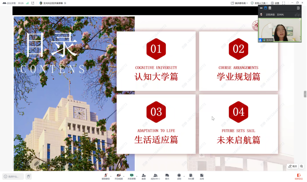 2025级本科新生辅导员王兴兴以“历尽千帆,遇见彼此;考往启新,奔赴成长”为题,从认知大学、学业规划、生活适应、未来启航等四个篇章与同学们交流,详细介绍学校和学院的办学历史、培养体系和特色工作,解读大学各阶段的发展目标,分享校园生活适应的技巧,鼓励同学们树立积极的人生态度,勇于面对挑战,在大学中实现自我成长与突破。