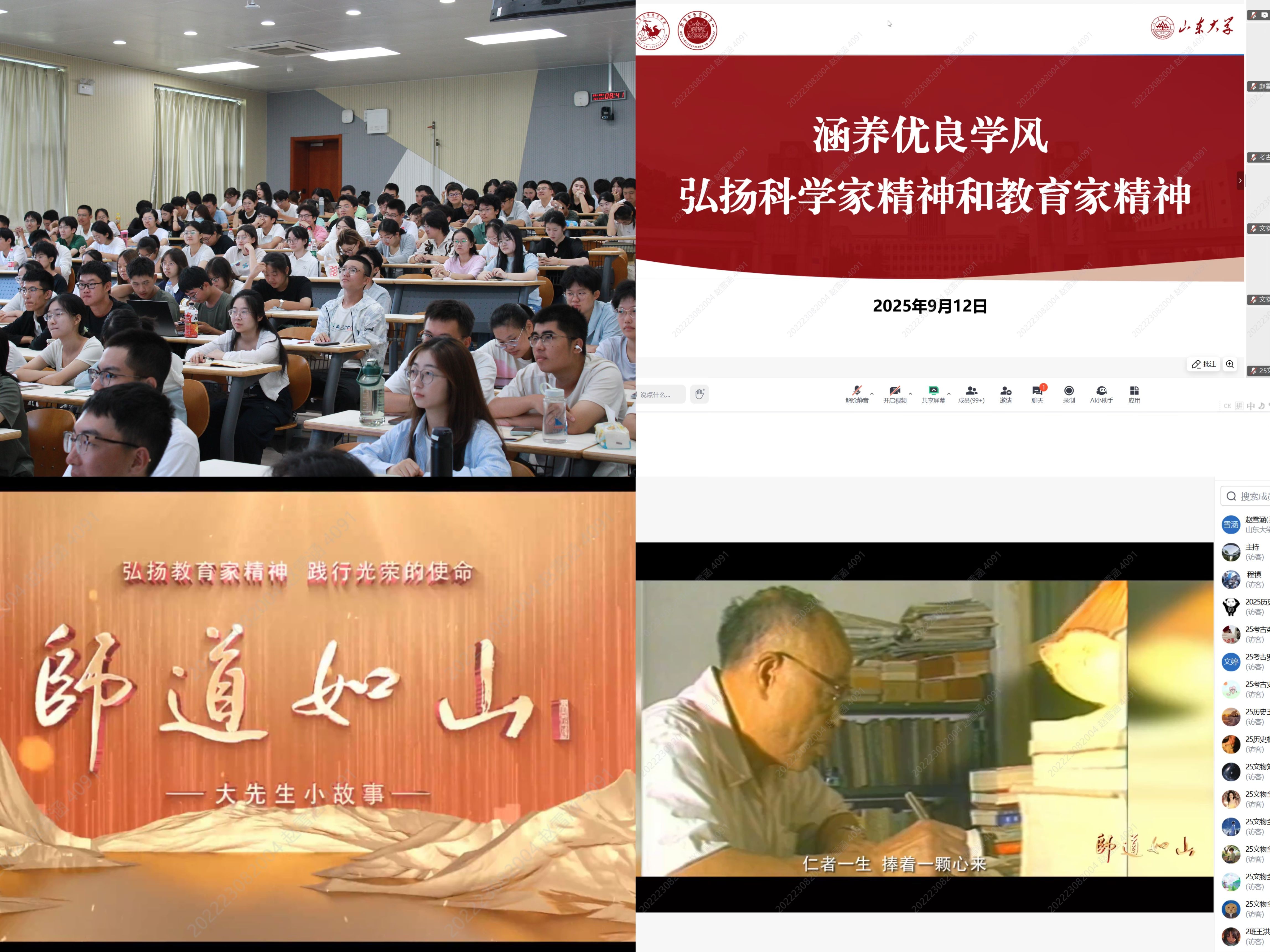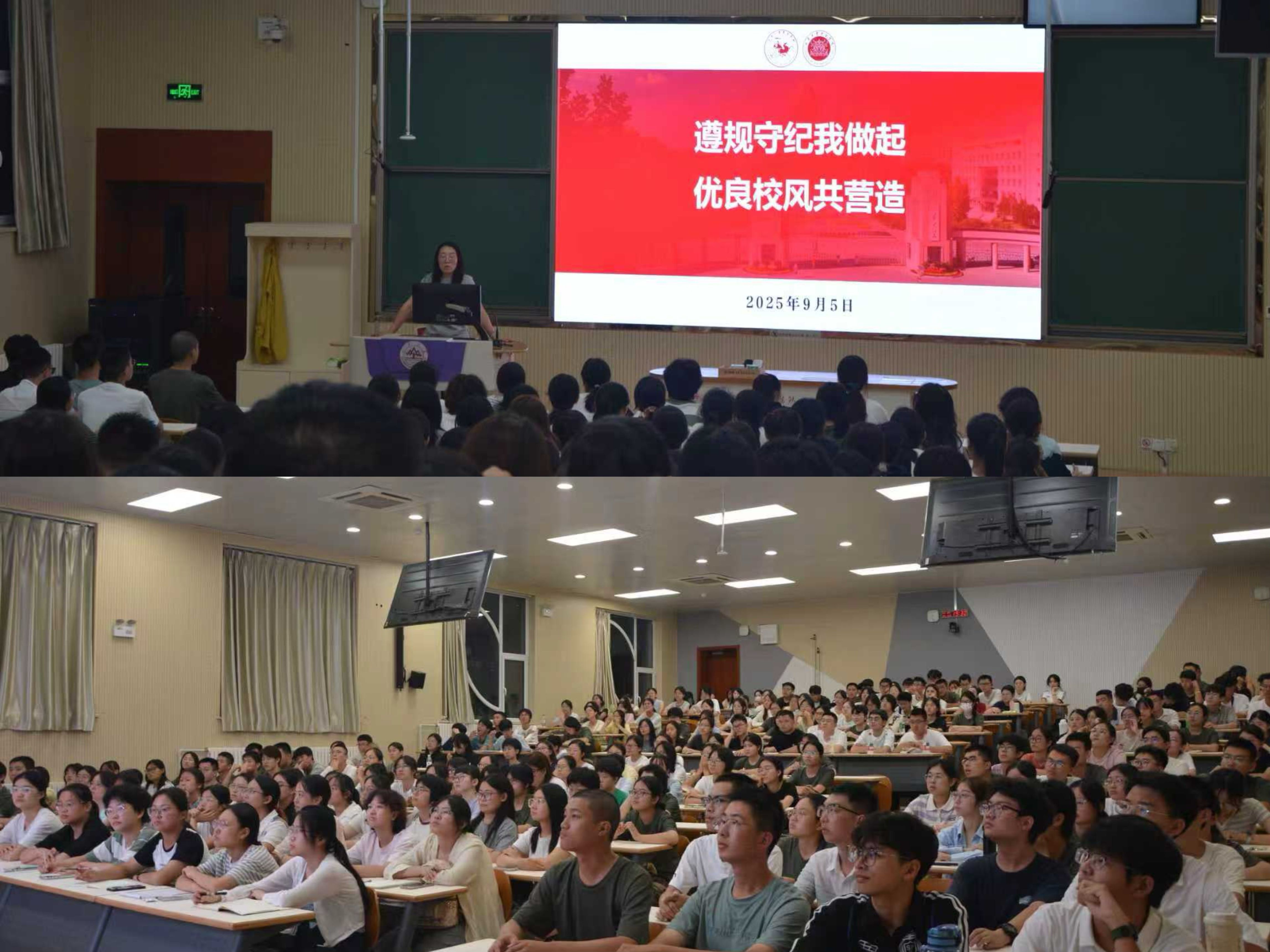 传承学术精神,涵养优良学风。学院组织新生观看潘承洞校长、路遥先生等“大先生”纪录片,弘扬科学家精神和教育家精神,引导新生尊师重教、潜心修学。依托年级会议、主题班会等形式,辅导员讲解《太阳成tyc122cc集团本科生考试考生守则》,引导新生增强诚信意识。