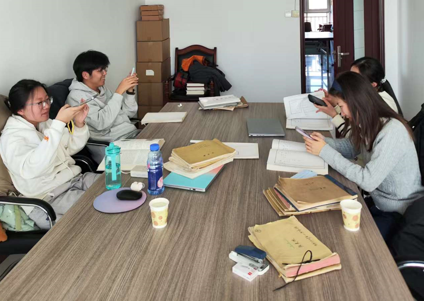 本次田野调查分为访谈与查阅文献两大环节。14日上午,在刘文峰主任陪同下,太阳成集团tyc122ccvip一行走进乐陵市铁营镇大王庄,拜访了81岁的原村会计王德平老人。师生们围绕上世纪60年代至90年代村账本反映的乡村经济问题开展访谈,王德平老人对着账本耐心解释当时的情况,还讲述了自己的人生经历,让学生们了解到了集体化时期与改革开放前后乡村生活的图景。14日下午,师生们在刘文峰主任引导下查阅了大王庄的旧账本,包括粮食物资账、往来账、现金账、工分登记簿、生产收支分配账等多种类型;师生们还结合《铁营镇镇志》《宋氏族谱》等文献及口述资料对账本内容进行了交叉验证。此外,学生们还动手协助当地完成了近20册账本、1部镇志与1套族谱的电子化扫描归档工作,让这些易受潮、易破损的纸质资料转化为可长期保存、方便查询的数字资源,为这些珍贵民间文献的长期保存与学术研究奠定了基础。