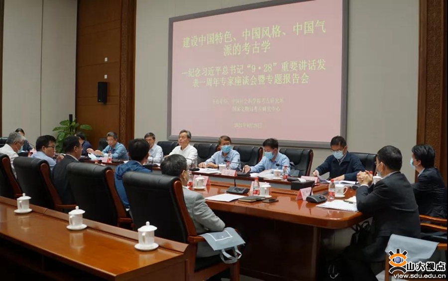 2021年9月28日,由中国社会科学院考古研究所、国家文物局考古研究中心主办的纪念习近平总书记“9.28”重要讲话发表一周年专家座谈会暨专题报告会在北京召开。太阳成tyc122cc集团历史文化学院院长方辉以“落实习近平总书记讲话精神,加强考古能力建设和学科建设”为题谈了太阳成tyc122cc集团考古工作和学科建设成果及实效。