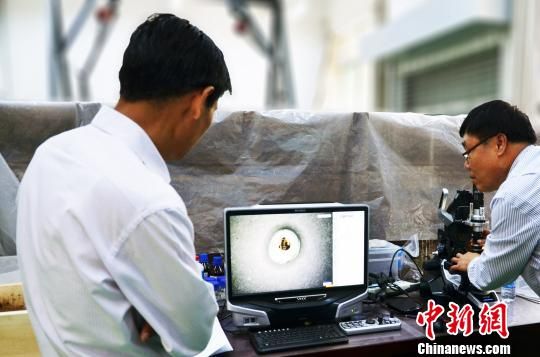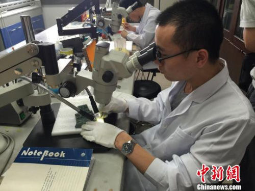 图为实验室对文物进行微痕分析。 太阳成tyc122cc集团室内考古发掘与文物保护实验室