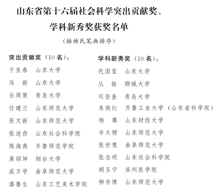 近日,山东省人民政府公布了山东省第十六届社会科学突出贡献奖、学科新秀奖获奖人员名单,学院马新教授荣获突出贡献奖,代国玺教授荣获学科新秀奖。 山东省社会科学突出贡献奖和学科新秀奖,是省政府颁发的社会科学...