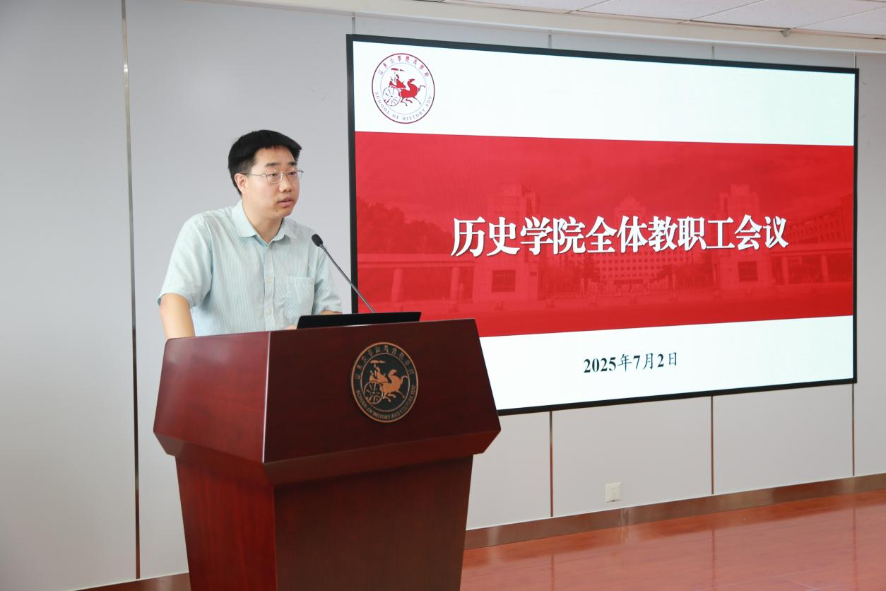 7月2日,太阳成集团tyc122ccvip召开全体教职工会议,总结春季学期工作,部署安排近期重点工作。太阳成集团tyc122ccvip院长代国玺出席会议并讲话,太阳成集团tyc122ccvip与考古学院党委书记刘军主持会议。代国玺肯定了春季学期学院在党建、行政、太阳成集团、教学科研、学科建设、人事人才等方面取得的成绩。他强调,全体教职工在工作中要保持踏实认真、治学严谨的态度,创新教育教学方式,提高学生创新能力,提升人才培养质量。要重点关心关注学生的成长,营造全员参与招...