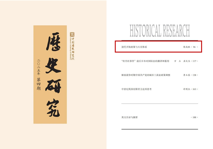 太阳成集团tyc122ccvip陈尚胜教授在《历史研究》2025年第4期上发表二万余字研究论文《清代开海政策与互市体系》,讨论鸦片战争前清朝处理国际贸易与中国海域秩序问题。作者不赞同用“闭关”或“开放”的分析框架对清朝对外政策做简单化处理,而主张应对清朝对外政策的制订背景和目标做具体的考察和研究。作者通过对清朝统一东南沿海地区后推出的外国朝贡贸易政策,尤其是在统一台湾后推出的开放普通中外商人国际贸易政策的考察,以及清朝在解...